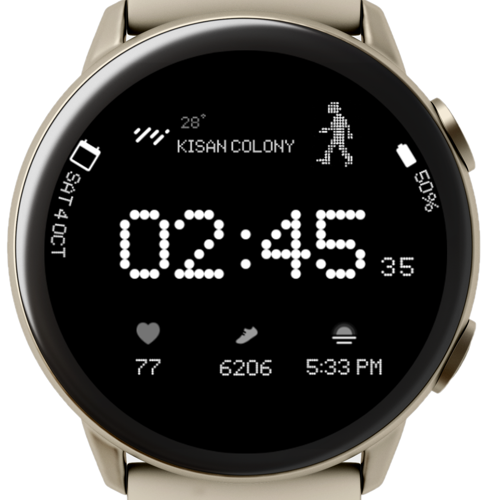 Two Curved Complications: Customizable arcs on both sides for essential data like battery, steps, or weather.